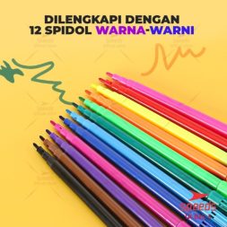-Dilengkapi buku gambar + 12 spidol warna-warni untuk menggambar